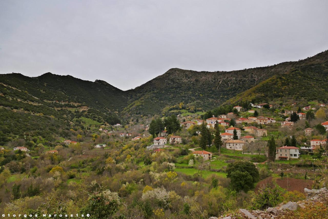 Το χωρίο χωρίζεται σε δύο ενορίες (μαχαλάδες) με βάση τους δύο κεντρικούς ναούς του. Ο πρώτος, ο ναός του Ευαγγελισμού της Θεοτόκου βρίσκεται στην κεντρική πλατεία του χωριού και «ανηγέρθη και ανιστορήθη», όπως αναφέρει η σχετική επιγραφή το 1703. Ο δεύτερος, ο ναός του Αγίου Γεωργίου,είναι τρίκλιτη θολωτή βασιλική και θεωρείται παλαιότερος κατά 50 με 80 χρόνια. Αξιοσημείωτο είναι το γεγονός ότι τα δύο πλάγια κλίτη του ναού έχουν μορφή παρεκκλησιού καθώς στο δεξιό τιμάται ο Άγιος Δημήτριος και στο αριστερό ο Άγιος Χαράλαμπος.Αξίζει να αναφερθεί το πανύψηλο και αιωνόβιο (με ηλικία άνω των 4.000 χρόνων) κυπαρίσσι που βρισκόταν στο προαύλιο του ναού με διάμετρο βάσης 9 m και ύψος πάνω από 40 m. Σήμερα στη θέση του έχει απομείνει μέρος του κορμού και οι ρίζες του να μαρτυρούν το μεγαλείο του.