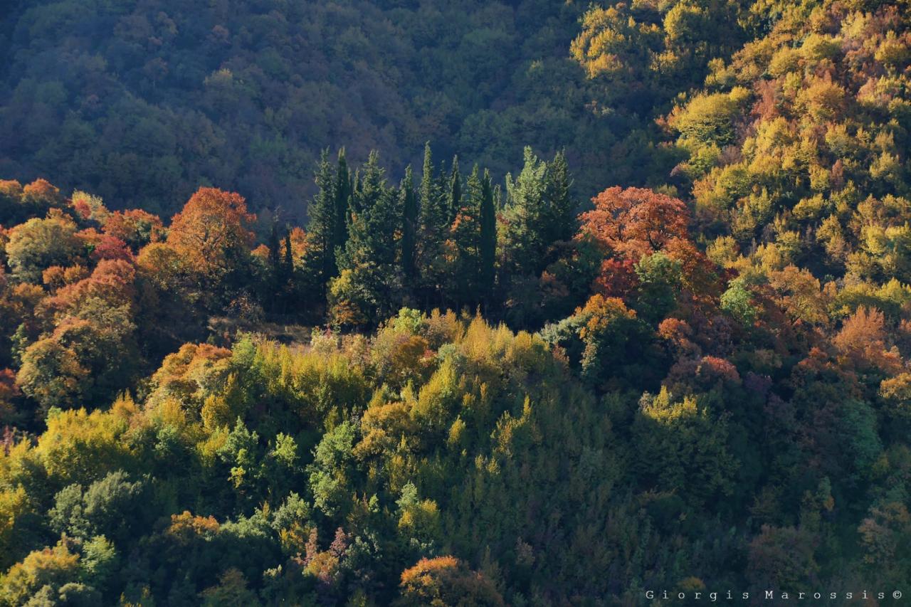 Αξίζει να αναφερθεί το πανύψηλο και αιωνόβιο (με ηλικία άνω των 4.000 χρόνων)κυπαρίσσι που βρισκόταν στο βορινό προαύλιο του ναού με διάμετρο βάσης 9 μέτρα και ύψος πάνω από 40 μέτρα. Σήμερα στη θέση του έχει απομείνει μέρος του κορμού και οι ρίζες του να μαρτυρούν το μεγαλείο του.