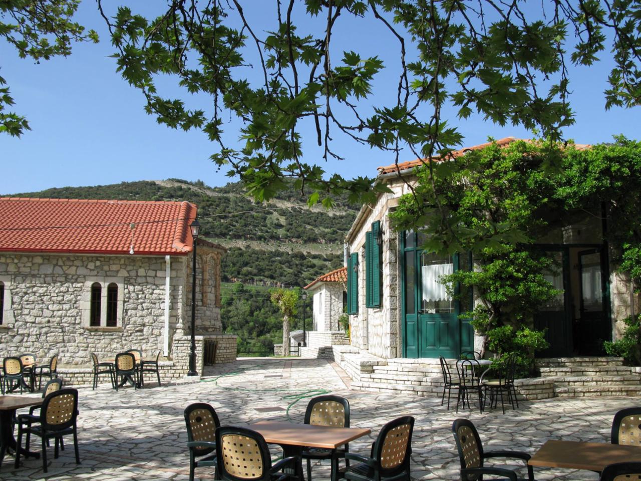 Στην πλατεία του χωριού και κάτω από τη σκιά ενός αιωνόβιου πλατάνου λειτουργεί το παραδοσιακό καφεστιατόριο του χωριού, όπου ο επισκέπτης μπορεί να γευτεί τοπικές παραδοσιακές γεύσεις, ζεστή σοκολάτα το χειμώνα και το γνωστό «υποβρύχιο» το καλοκαίρι, να απολαύσει τον ήχο των ζαριών από το τάβλι και να δοκιμάσει την τύχη του στην παραδοσιακή για την περιοχή «δηλωτή»!
