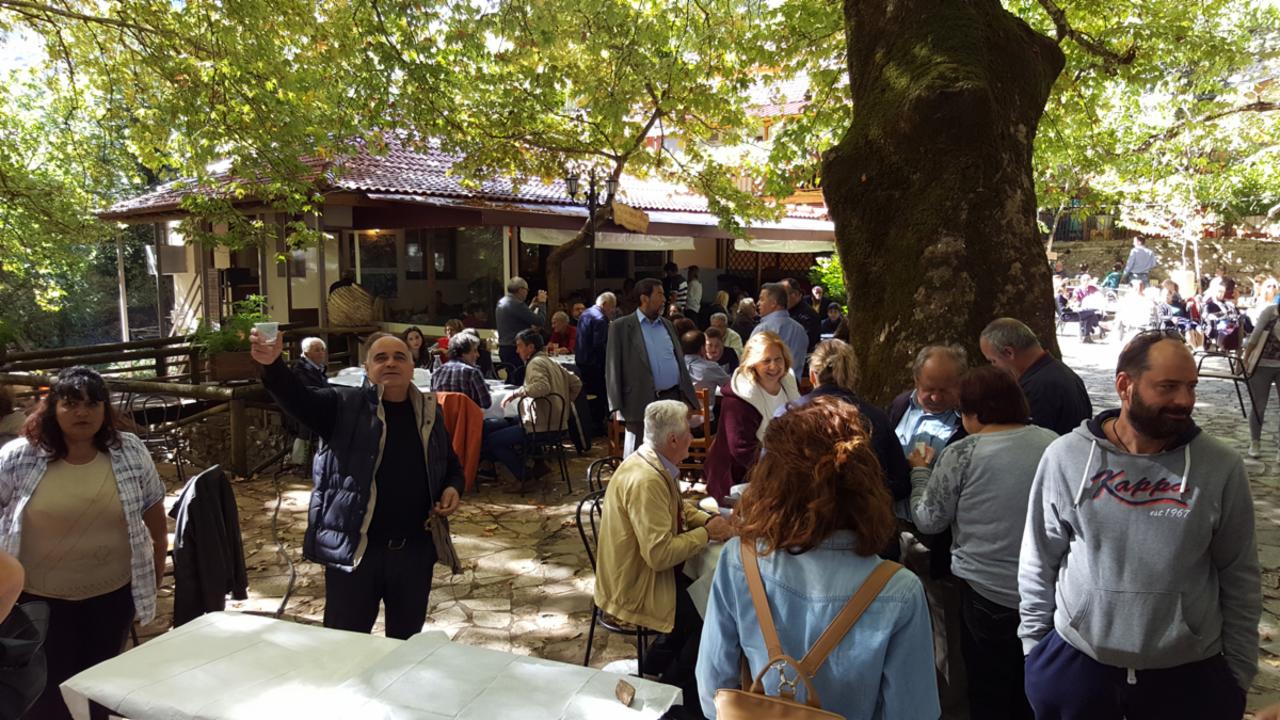 στον πλάτανο, στη βρύση