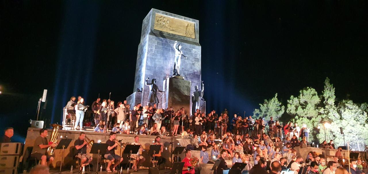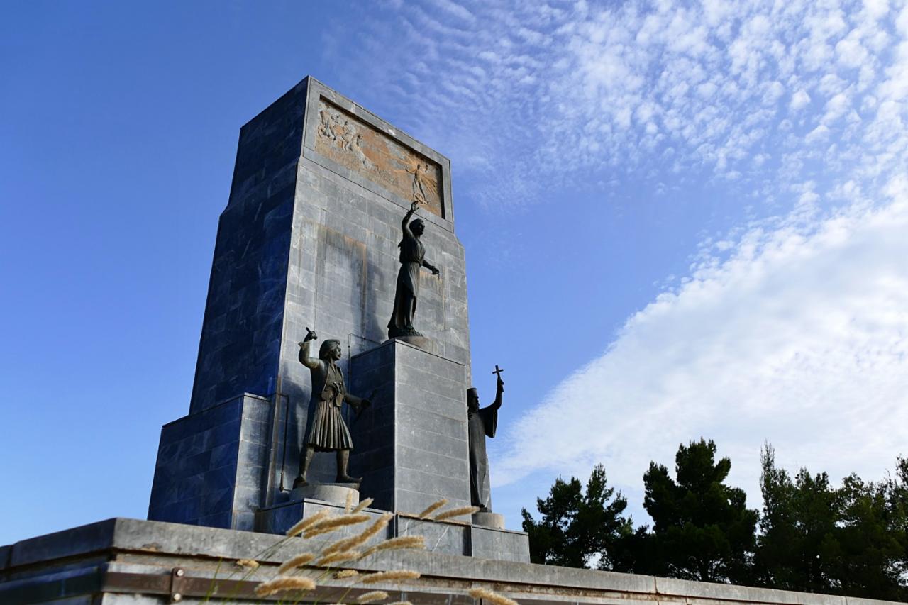 Στο λόφο απέναντι από τη Αγία Λαύρα υψώνεται το λαμπρότερο μνημείο του Έθνους, το Πανελλήνιο Ηρώο Εθνικής Παλιγγενεσίας του 1821.
