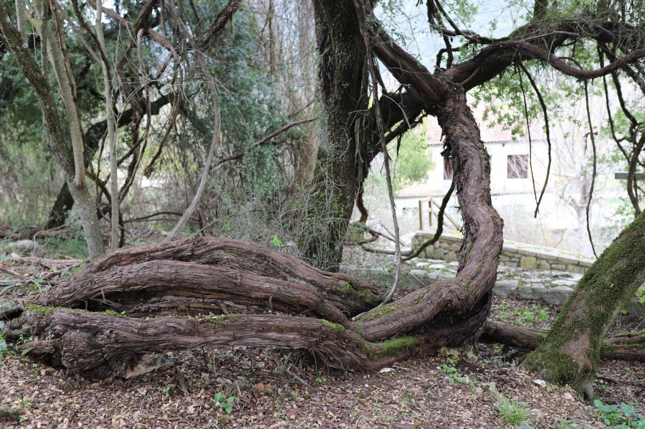 Πρόκειται για τεράστιους κορμούς από αμπέλι που απλώνονται πάνω σε δέντρα, στον προαύλιο χώρο της εκκλησίας του Αγίου Νικολάου. Πήρε το όνομά του από τον ιστορικό Παυσανία ο οποίος είχε επισκευθεί την περιοχή ταξιδεύοντας από τον Ορχομενό Μαντίνειας και περιηγούμενος στις όχθες του Αροανίου Ποταμού, στάθηκε για να αφουγκραστεί τους «άδοντες ιχθύες»! Θέλησε να διαπιστώσει ο ίδιος τη φήμη πως οι πέστροφες έκαναν ήχο όμοιο με τη λαλιά του πουλιού "τσίχλα". Έκανε, έπειτα, μια στάση να ξεκουραστεί στη σκιά του Κλήματος και εντυπωσιασμένος από αυτό το σπάνιο και θαλερό φαινόμενο της φύσης συνέστησε στους κατοίκους της περιοχής να το προσέχουν και να το περιποιούνται. Η ηλικία του υπολογίζεται στα 3000 χρόνια και το μήκος του φτάνει τα 100μ.